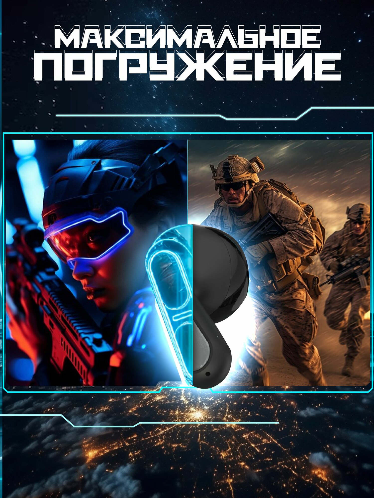Наушники беспроводные игровые с шумоподавлением, черный