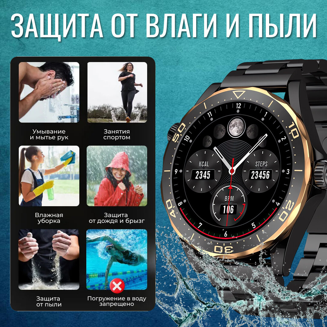 Смарт часы мужские GoodSmart Ultimate 2 чёрно-золотого цвета, AMOLED экран
