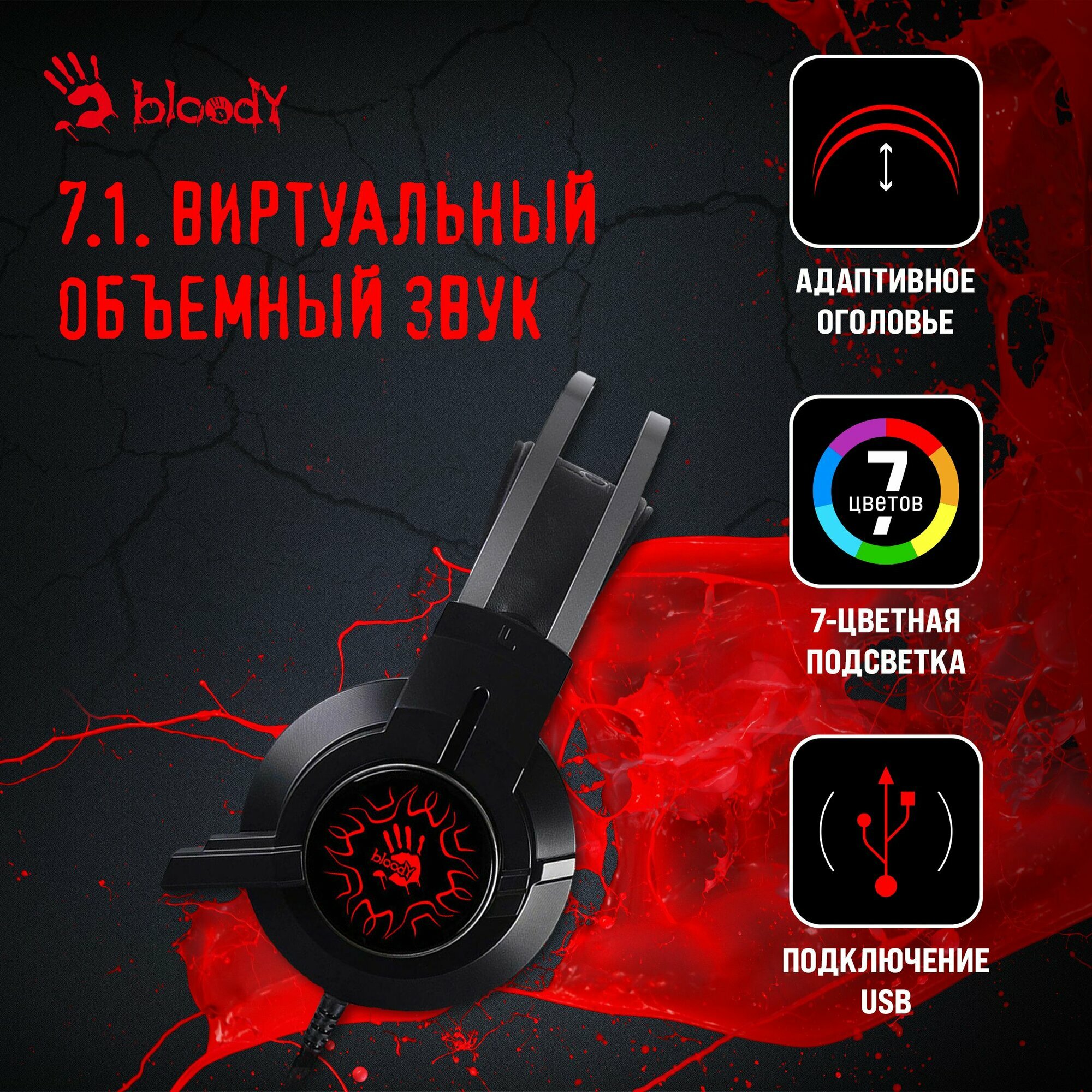 Наушники с микрофоном A4 Bloody J437 черный 1.8м мониторные USB (J437) интересное: