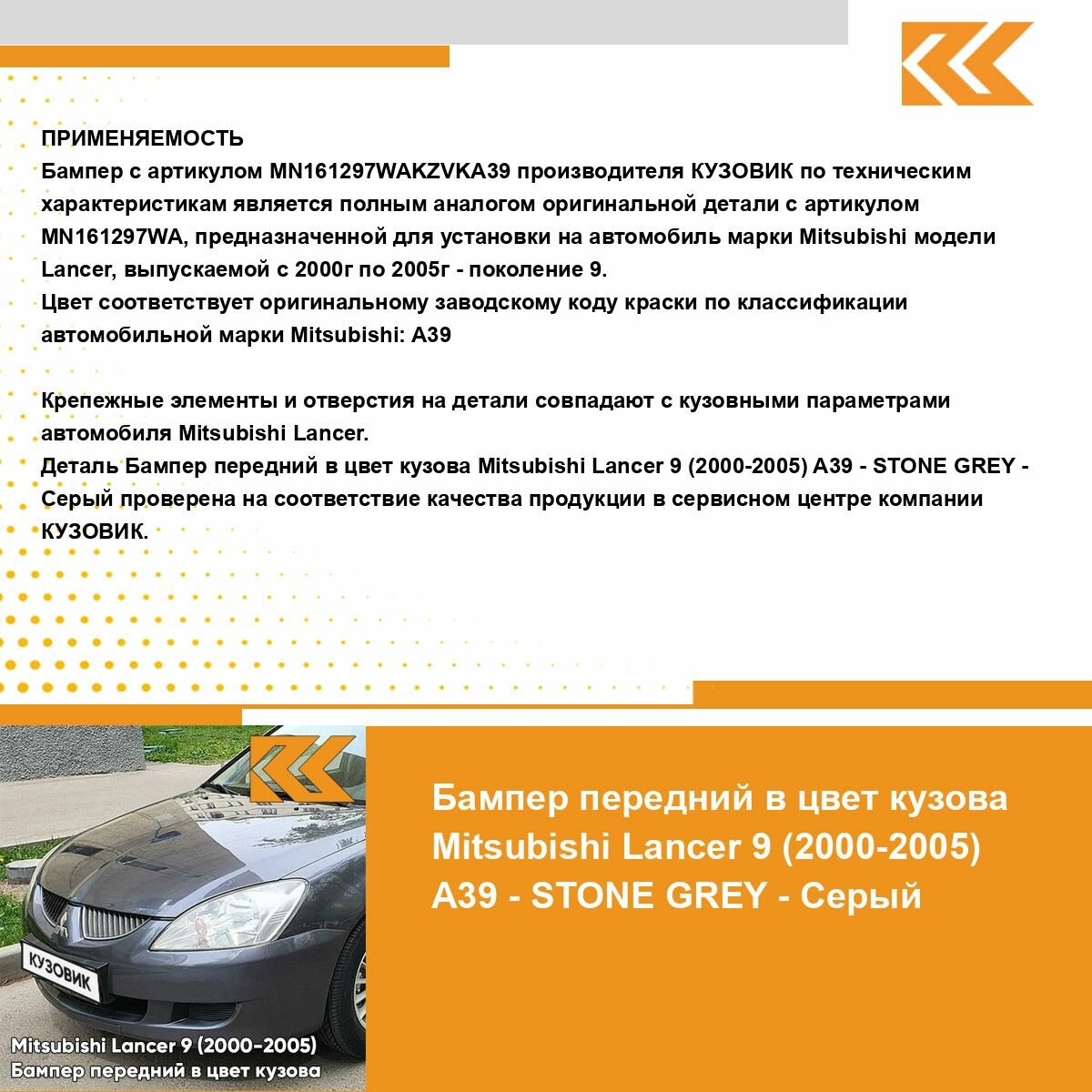 СохранитьБампер передний в цвет кузова для Митсубиси Лансер 9 Mitsubishi Lancer 9 (2003-2005) A39 - STONE GREY - Серый интересное: