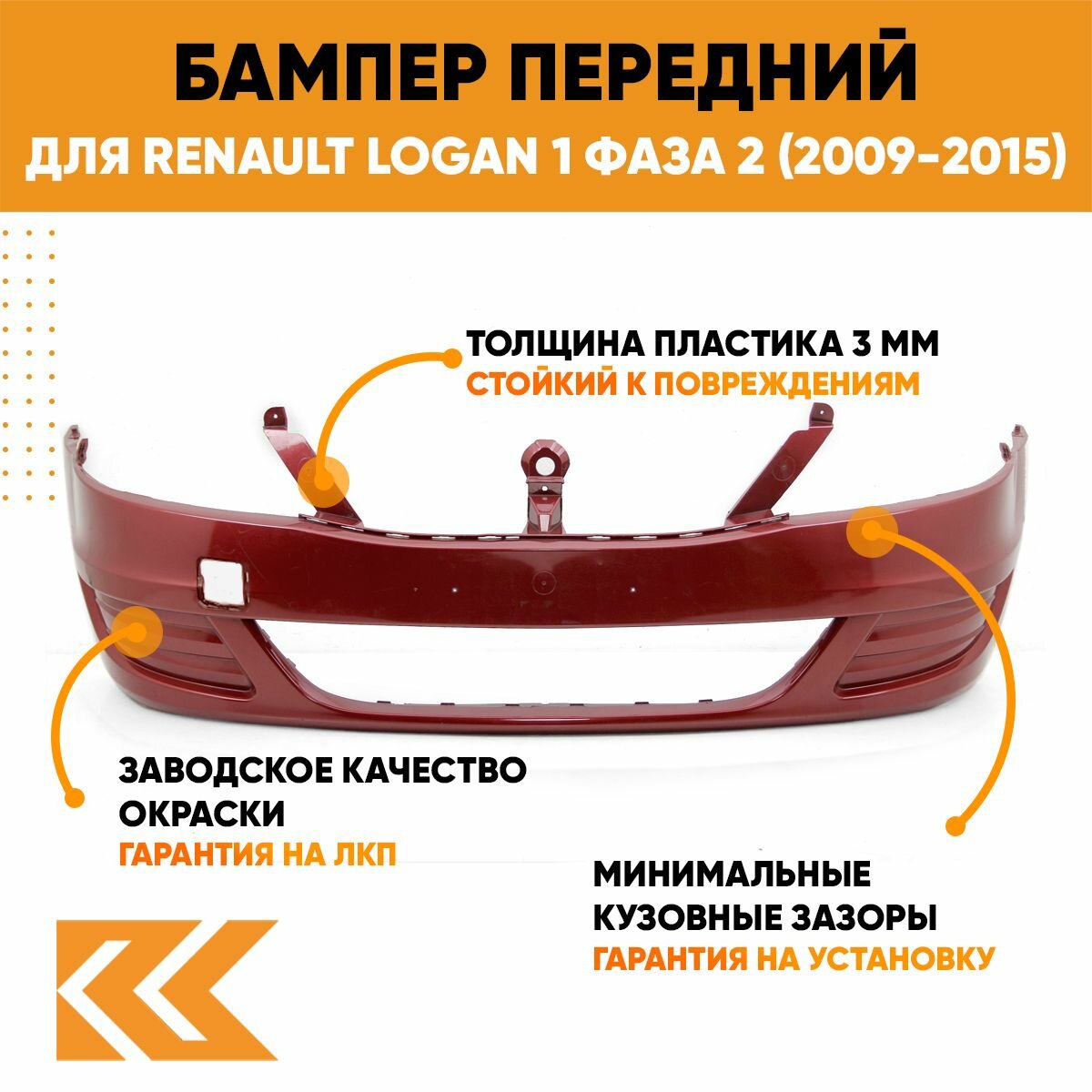 Купить Бампер передний в цвет кузова для Рено Логан Renault Logan 1 фаза 2 (2009-2015) 21B - ROUGE TOREADOR - Красный, без отверстия под птф