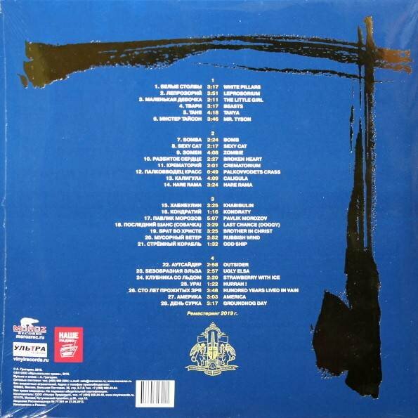 | Треклист | A1 Белые Столбы A2 Лепрозорий A3 Маленькая Девочка A4 Твари A5 Таня A6 Мистер Тайсон B1 Бомба B2 Sexy Cat B3 Зомби B4 Разбитое Сердце B5 Крематорий B6 Палковводец Красс B7 Калигула B8 Hare Rama C1 Хабибулин C2 Кондратий C3 Павлик Морозов C4 Последний Шанс (Собачка) C5 Брат Во Христе C6 Мусорный Ветер C7 Стремный Корабль D1 Аутсайдер D2 Безобразная Эльза D3 Клубника Со Льдом D4 Ура! D5 Сто Лет Прожитых Зря D6 Америка D7 День сурка |