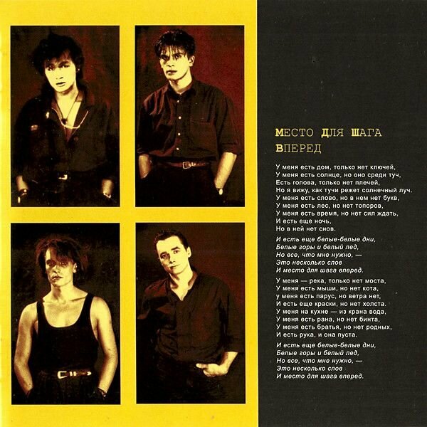 | Треклист | Диск содержит: 1 Песня Без Слов 5:07 2 Звезда По Имени Солнце 3:45 3 Невеселая Песня 4:21 4 Сказка 5:59 5 Место Для Шага Вперед 3:41 6 Пачка Сигарет 4:28 7 Стук 3:52 8 Печаль 5:32 9 Апрель |