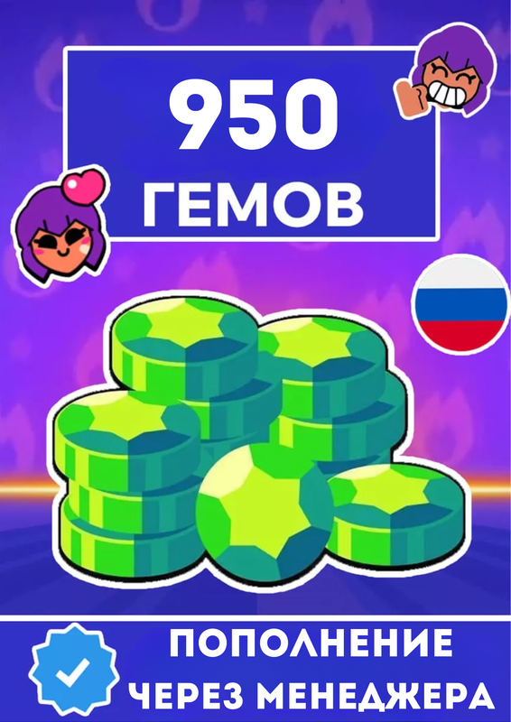 Пополнение Brawl Stars 950 гемов / Любой регион интересное: