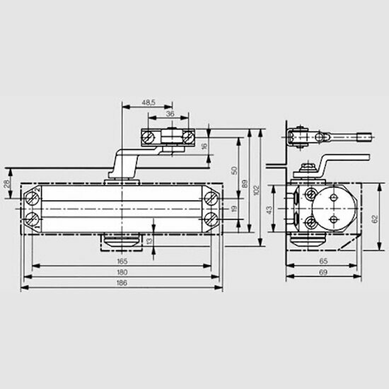Доводчик дверной TS 77 EN4, с рычажной тягой, серый