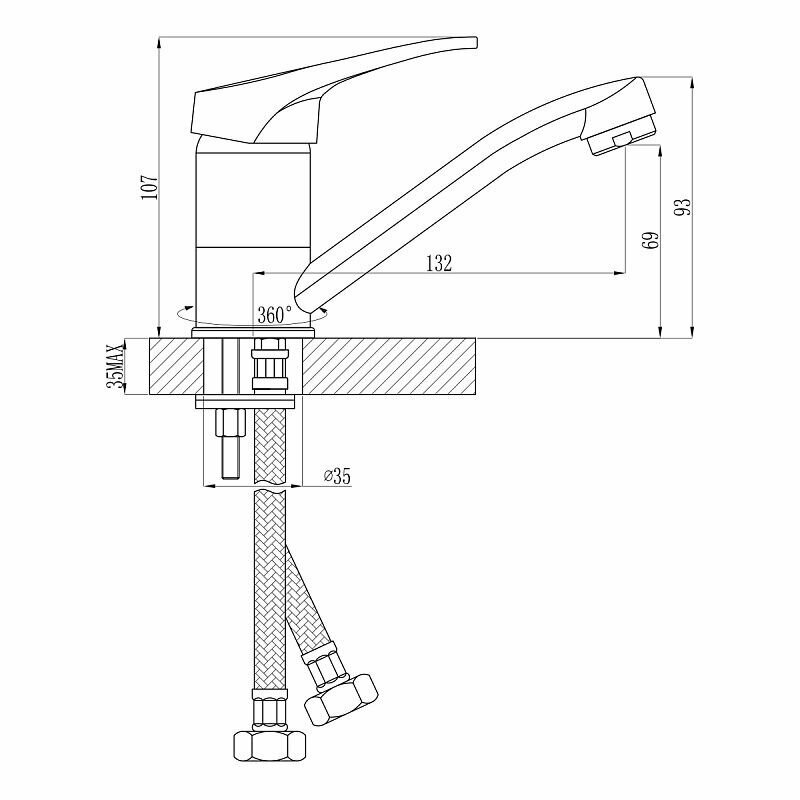 Смеситель одноручный (35 мм) для умывальника/мойки Rossinka B35-22