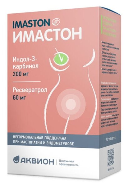 | Показания к применению | Прием Имастона будет полезен при любых состояниях, которые сопровождаются разрастанием тканей в органах репродуктивной системы. В частности: при фиброзно-кистозной мастопатии, эндометриозе, папилломавирусной инфекции. |