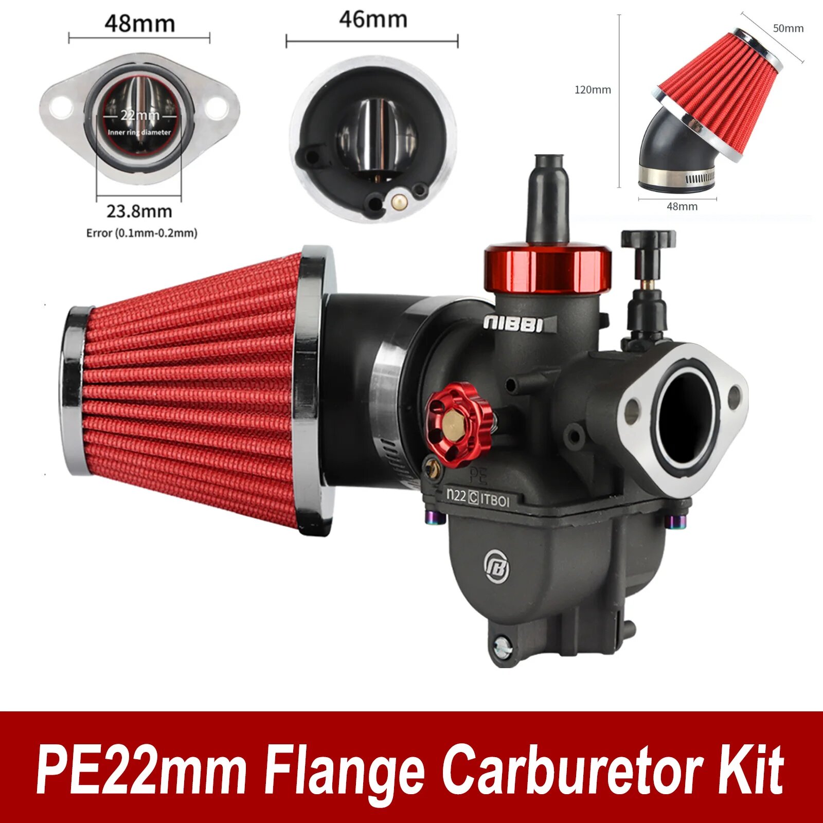 Купить Фланцевый карбюратор niнужной модели/PE24mm/PE26mm/PE28mm, набор воздушных фильтров 100cc-250cc для квадроцикла Yamaha Racing Pitbike мотоцикла, PE22mmFL Set