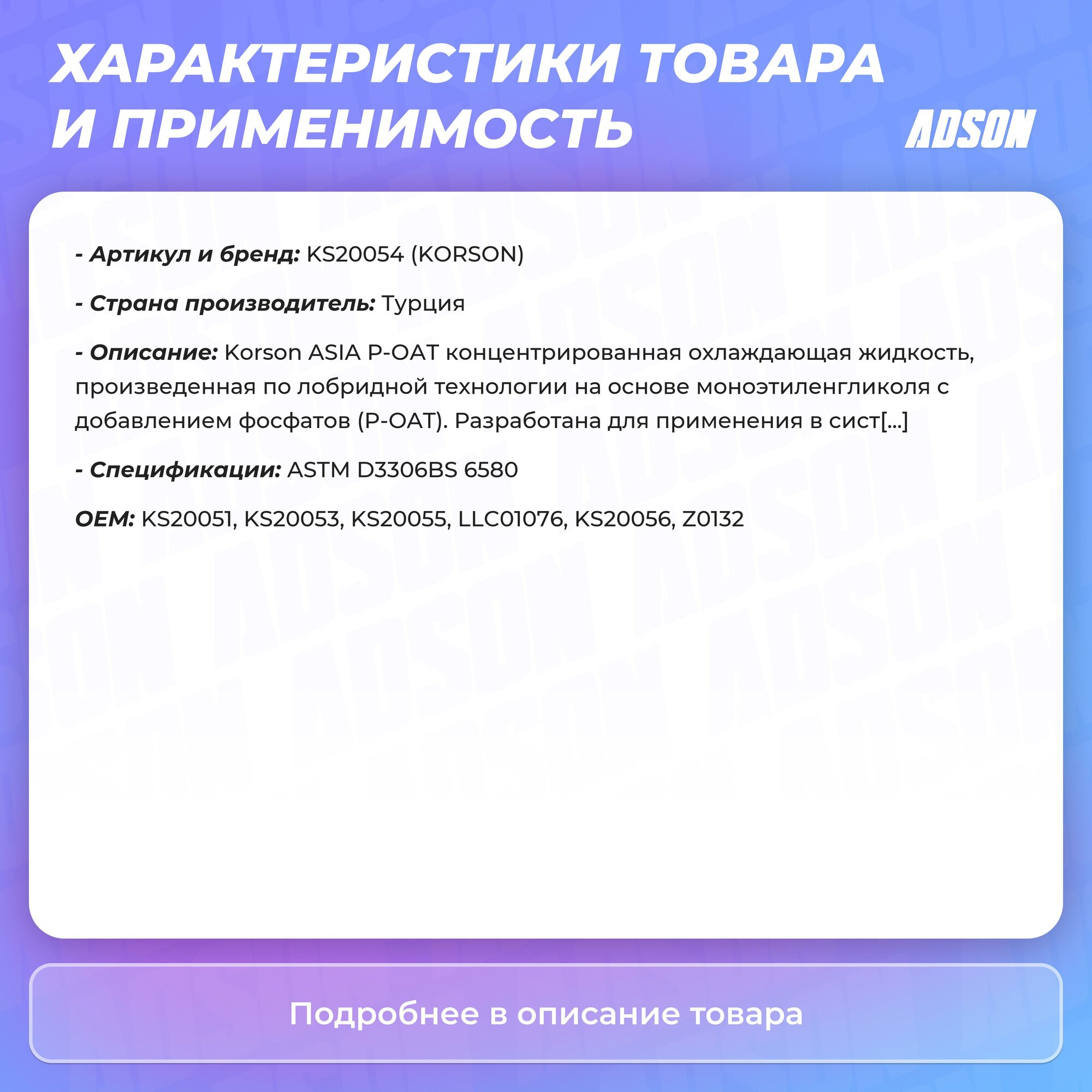 KORSON KS20054 Антифриз, концентрат ASIA Р-ОАТ фиоетовый 20 интересное: