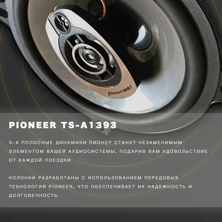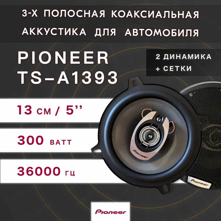 Автомобильные динамики "Pioneer TS-A1393" / Комплект из 2 штук / Коаксиальная акустика 3-х полосная, 13 См (5 Дюйм.), 480 Вт. интересное: