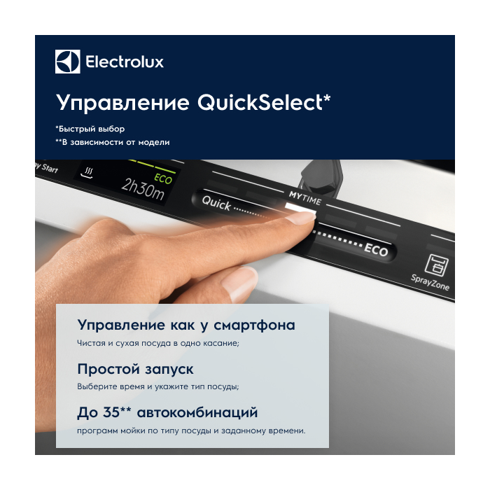 | Дополнительная информация | Двойной вращающийся распылитель, постоянно меняющий угол распыла, тщательно моет даже крупные предметы. Ящик MaxiFlex предназначен для размещения столовой и кухонной утвари практически любых форм и размеров. |