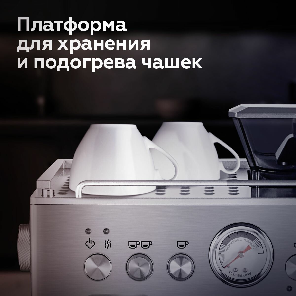 Кофейная станция BQ CM5001 Steel-Black, Давление 15 бар, Мощность 1550 Вт, Съемный резервуар для воды 2.3 л. 200 гр объем кофемолки, Точный контроль давления, Функция предсмачивания и программирования объема напитка. Для более полной передачи кофейного вк