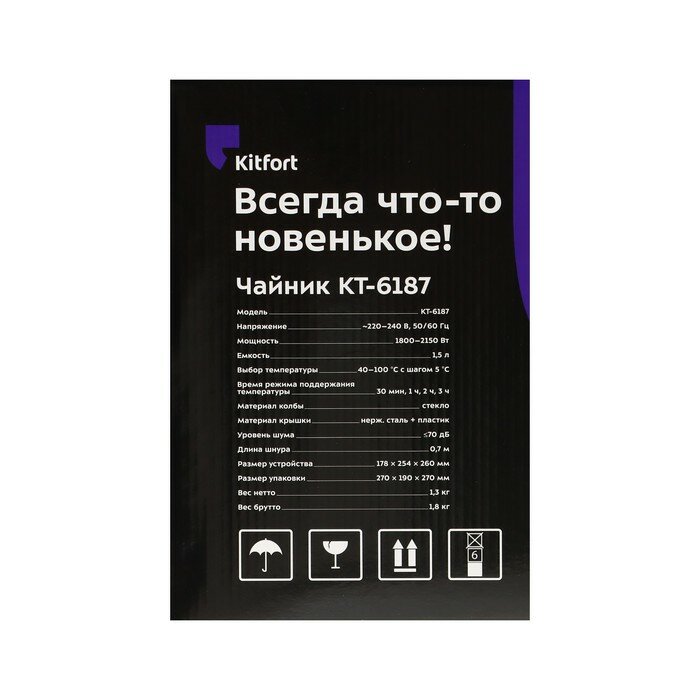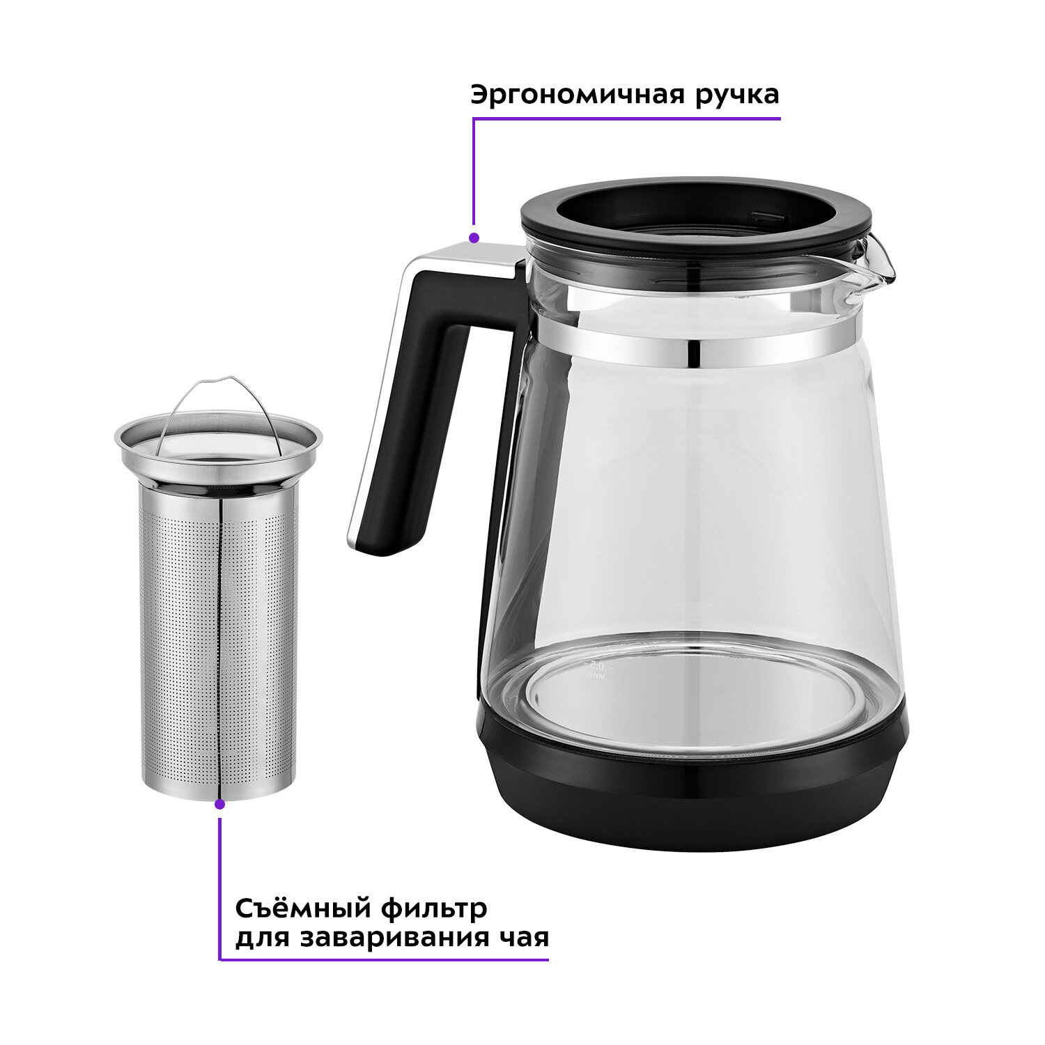 Чайник Kitfort Кт-6187, 1,5 л, 2150 Вт, черный/пластик .