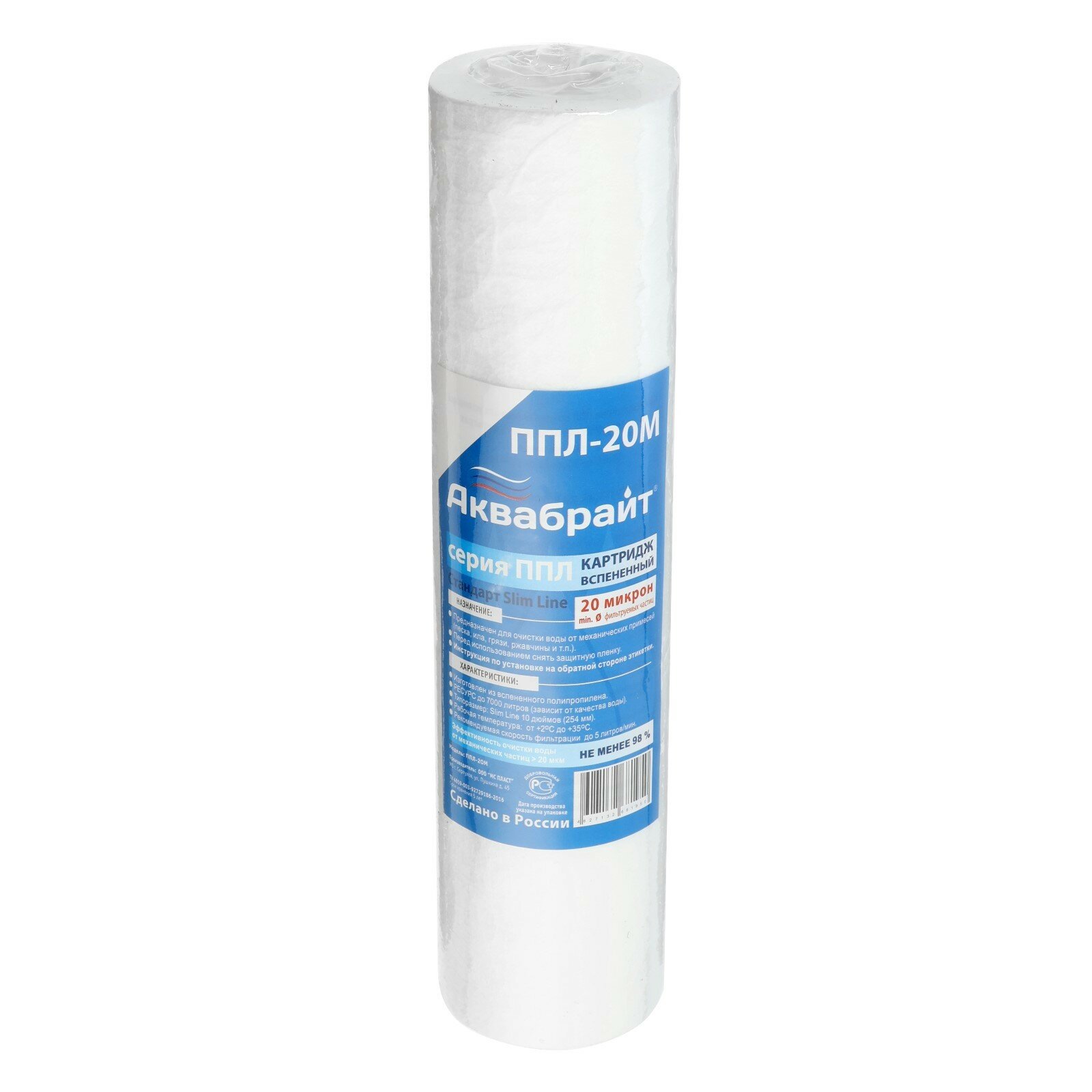 Сменный картридж Аквабрайт ППЛ-20М, SL10, вспененный полипропилен, 20 мкм