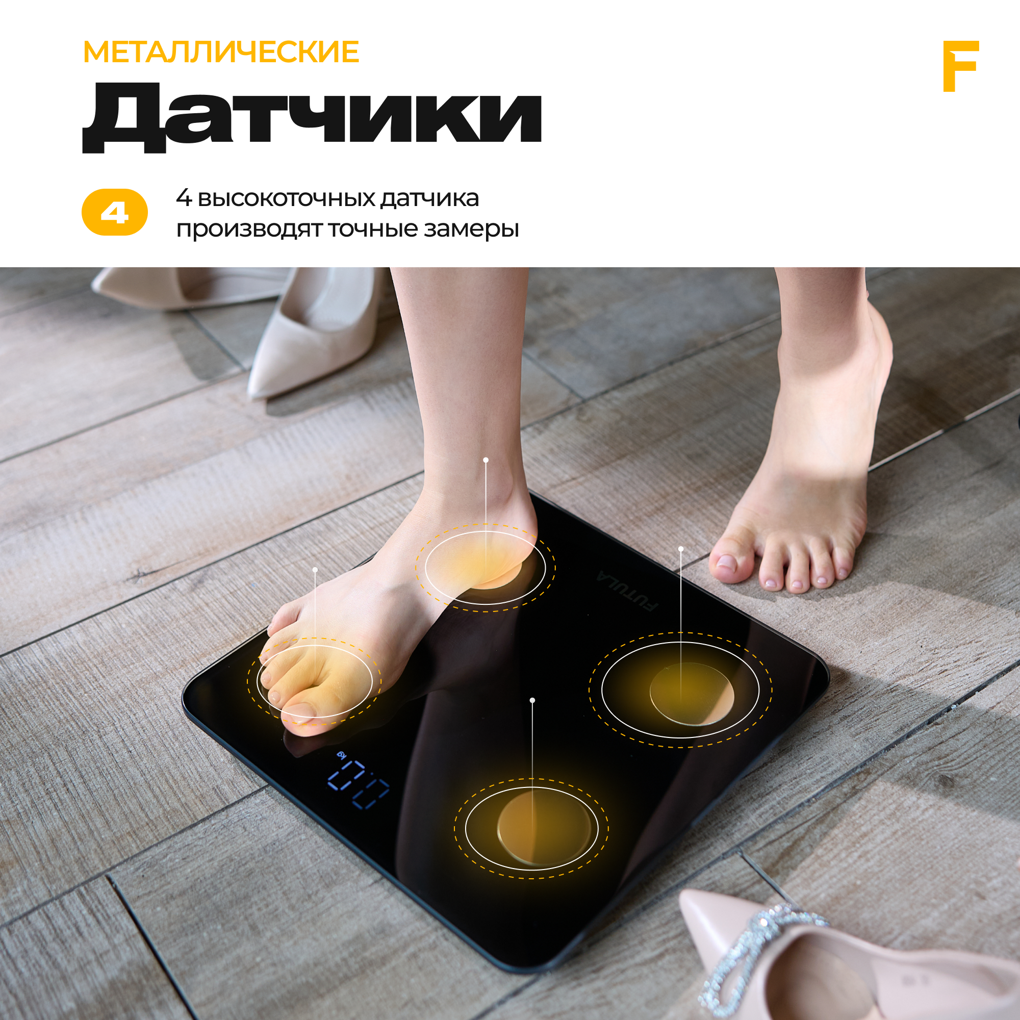Умные весы напольные Futula "Scale 7", черные, точность измерения 1 г