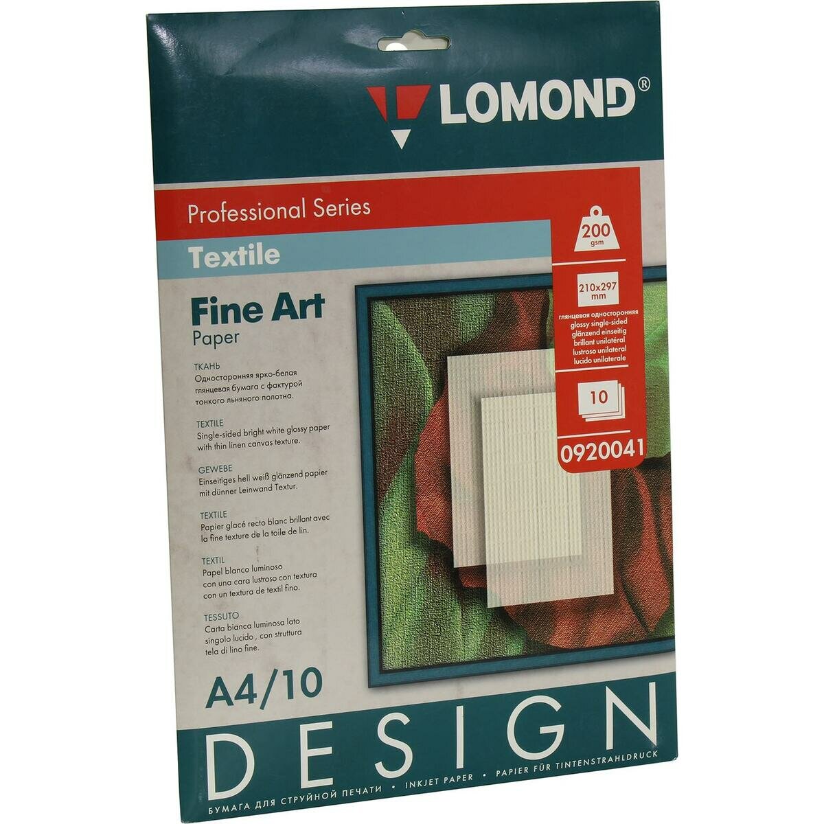 Арт бумага для струйной печати Lomond Textile (фактура Лён) A4, глянцевая, ярко-белая, 200 г/м2, 10 листов (0920041)