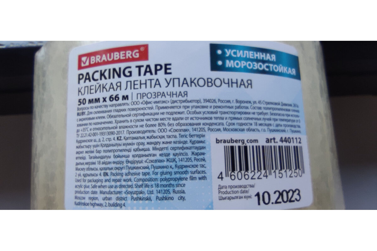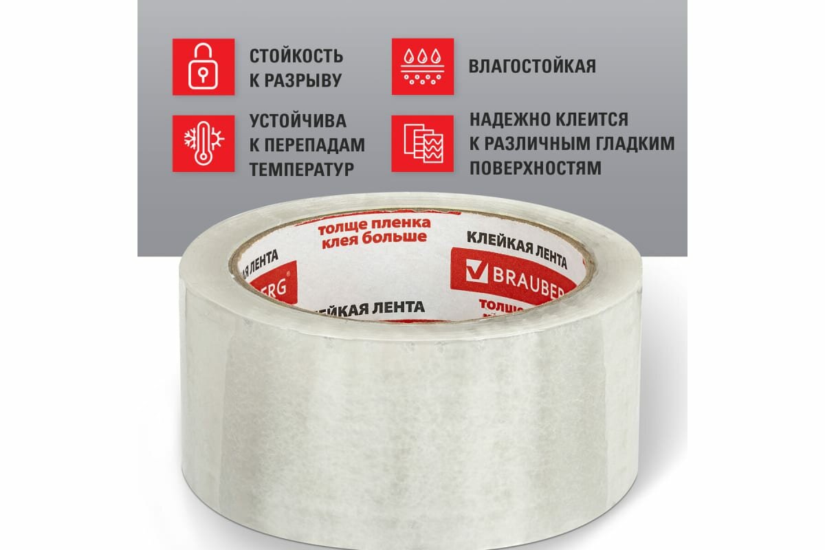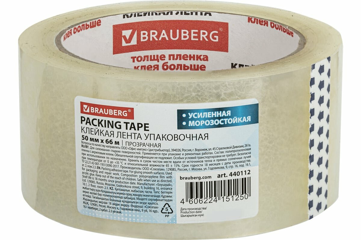 Клейкая лента BRAUBERG 50 мм х 66 м, упаковочная, усиленная, морозостойкая, прозрачная, 50 мкм, 440112 интересное: