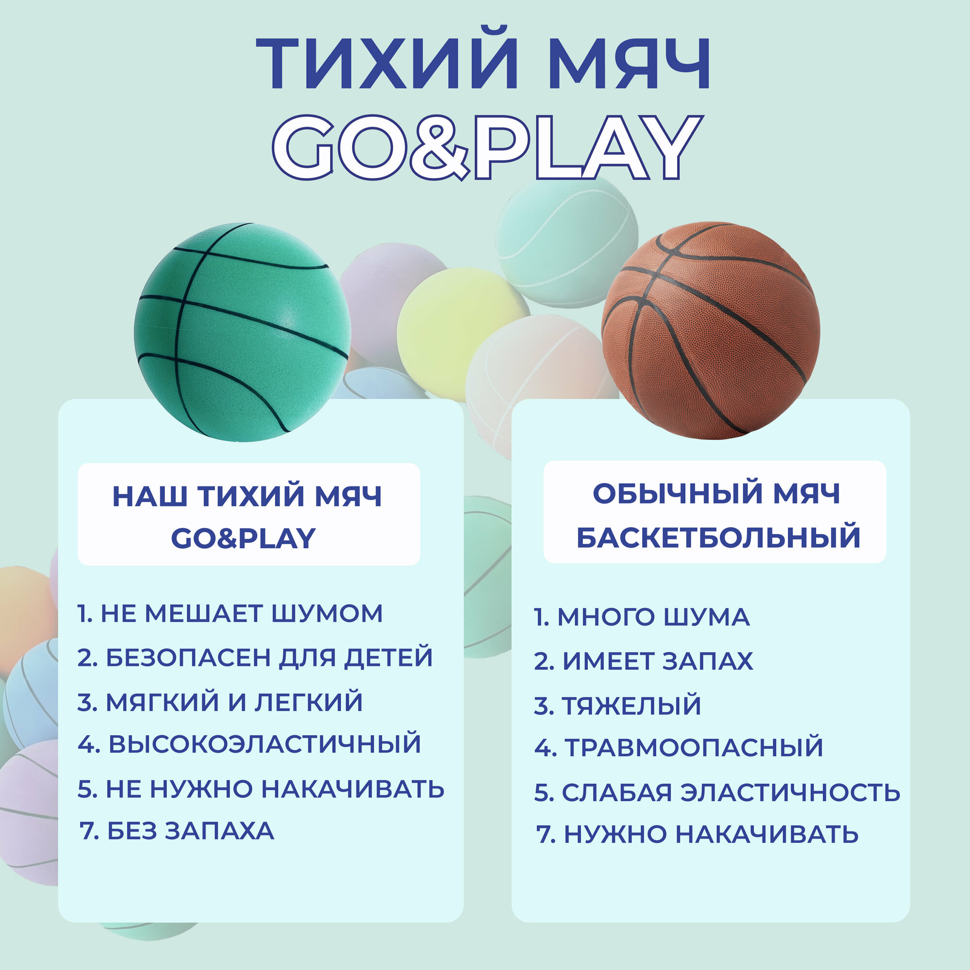 GO&PLAY Бесшумный баскетбольный мяч из пеноматериала для детей 5 размер, голубой Тиффани