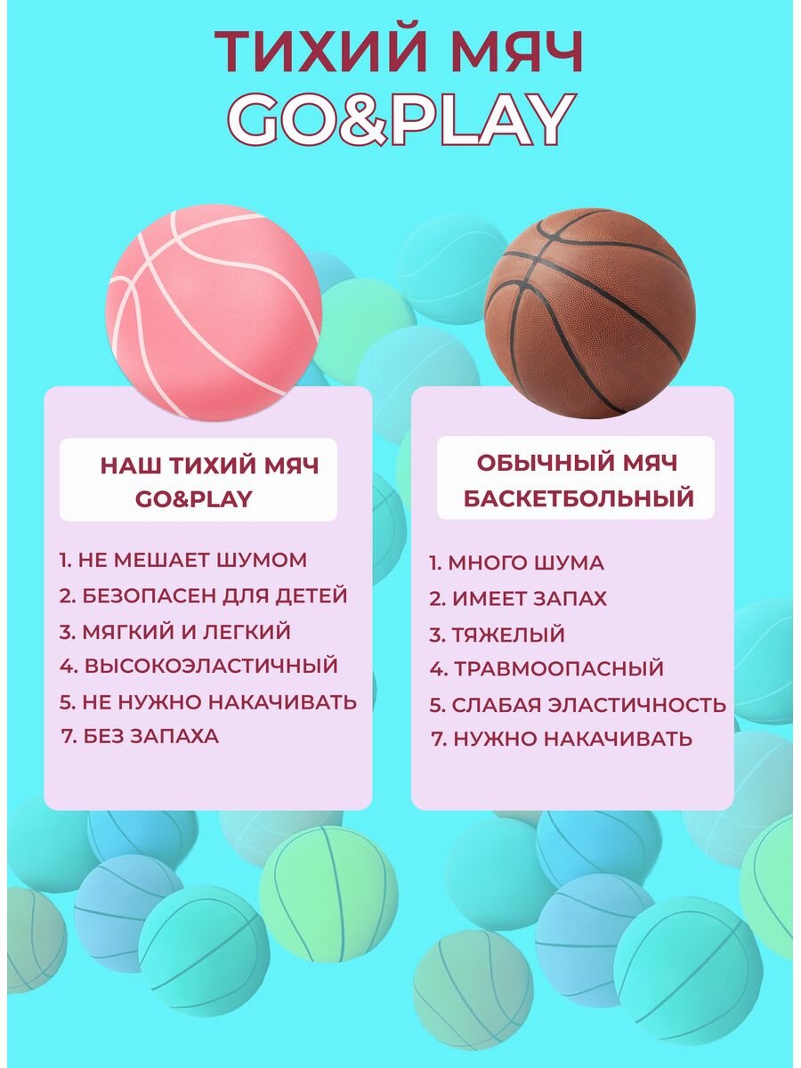 GO&PLAY Бесшумный баскетбольный мяч из пеноматериала для детей 5 размер, голубой Тиффани
