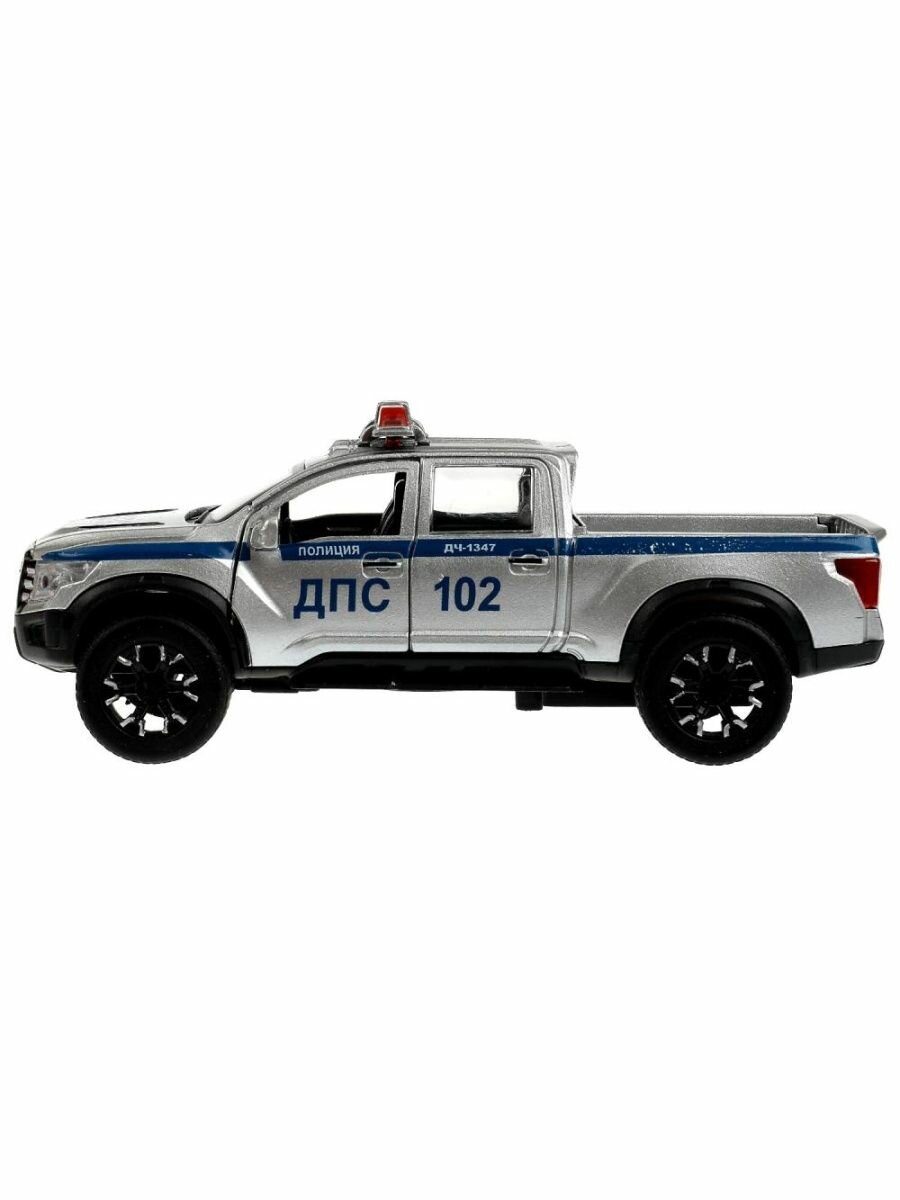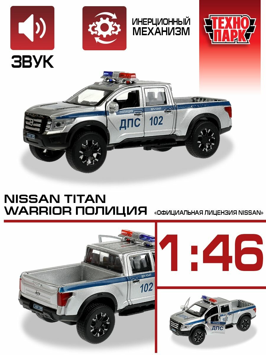 Купить Машинка игрушка детская для мальчика Nissan Titan Warrior Полиция Технопарк детская модель металлическая коллекционная инерционная с открывающимися дверьми серебристая 12,5 см