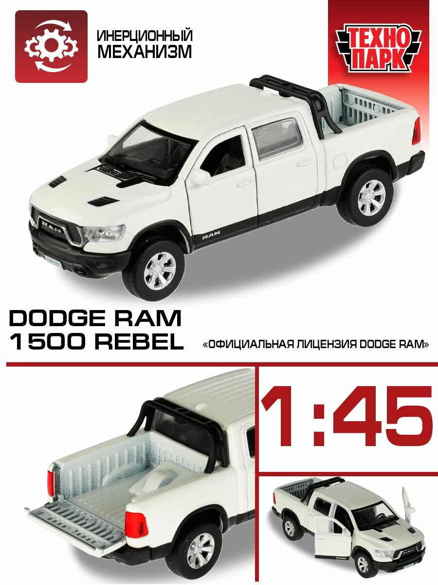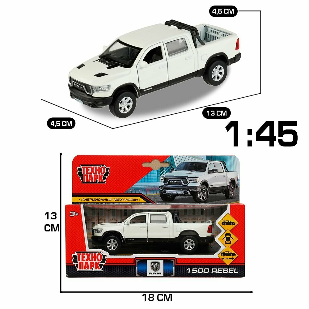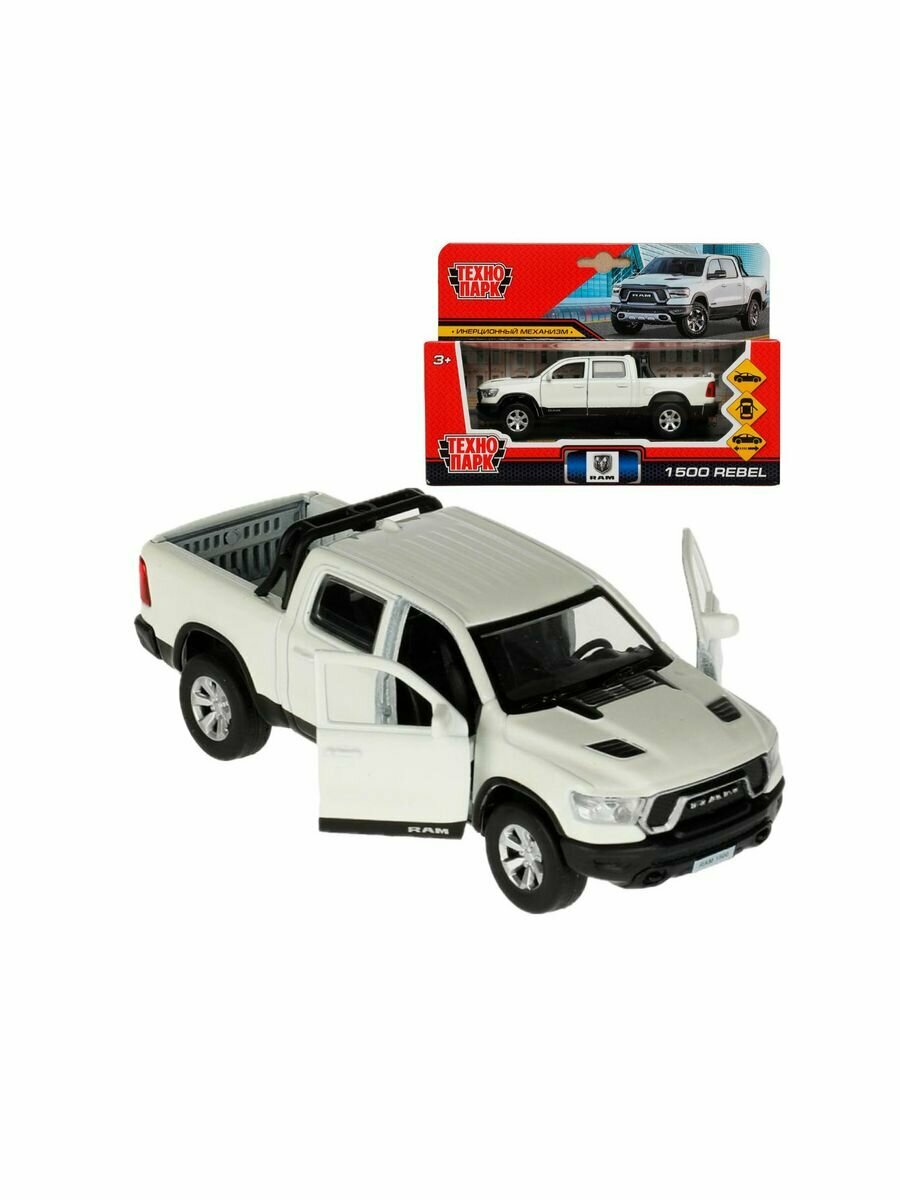 СохранитьТехнопарк. Модель "Dodge Ram 1500 Rebel" 13 см, металл двери, багаж, инер, белый, арт.RAM1500-13-WH RAM1500-13-WH интересное: