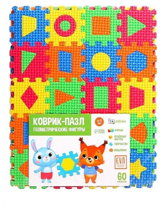 IQ-ZABIAKA Мягкий развивающий коврик-пазл из 60 элементов, геометрические фигуры, 60 х 25 см интересное: