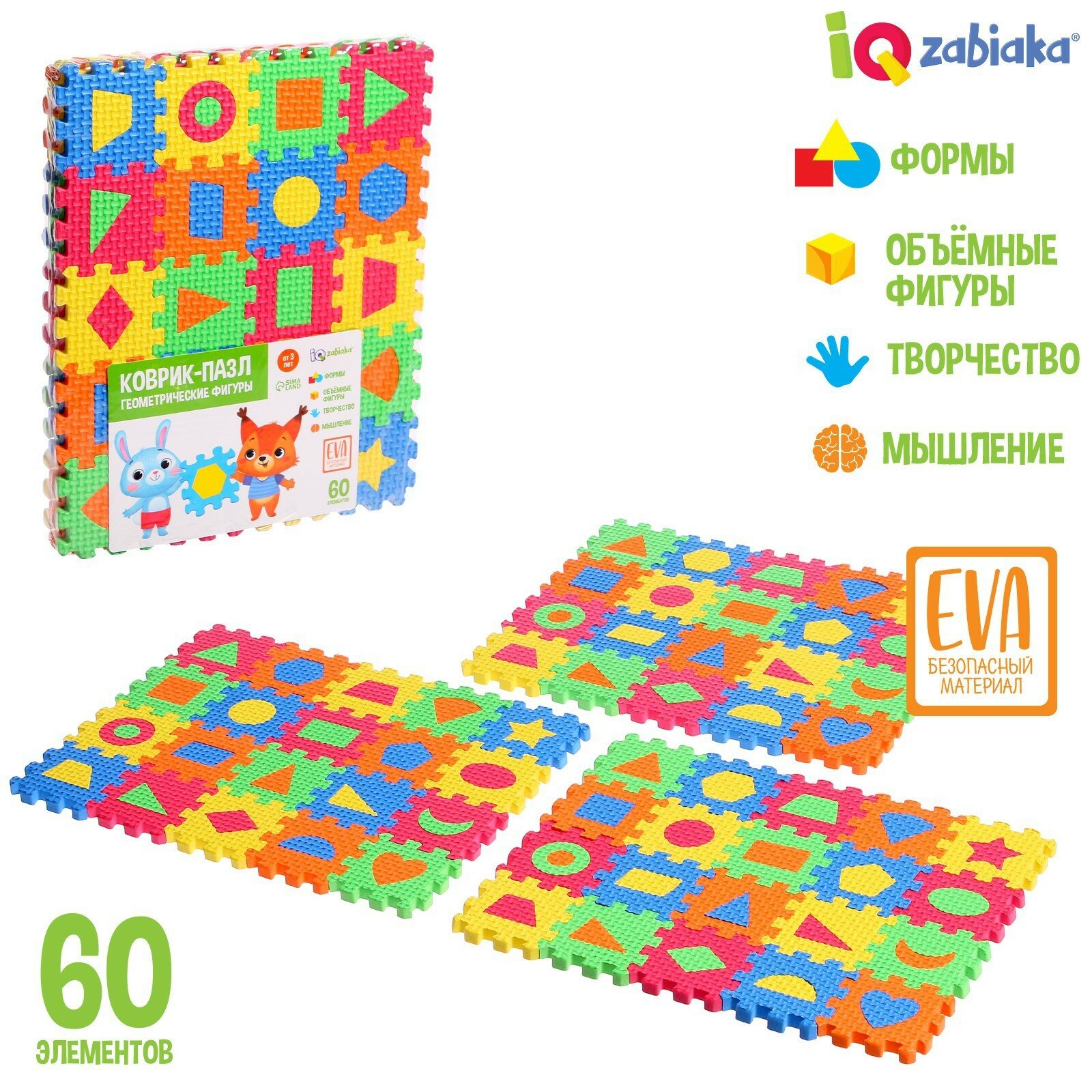 Купить IQ-ZABIAKA Мягкий развивающий коврик-пазл из 60 элементов, геометрические фигуры, 60 х 25 см