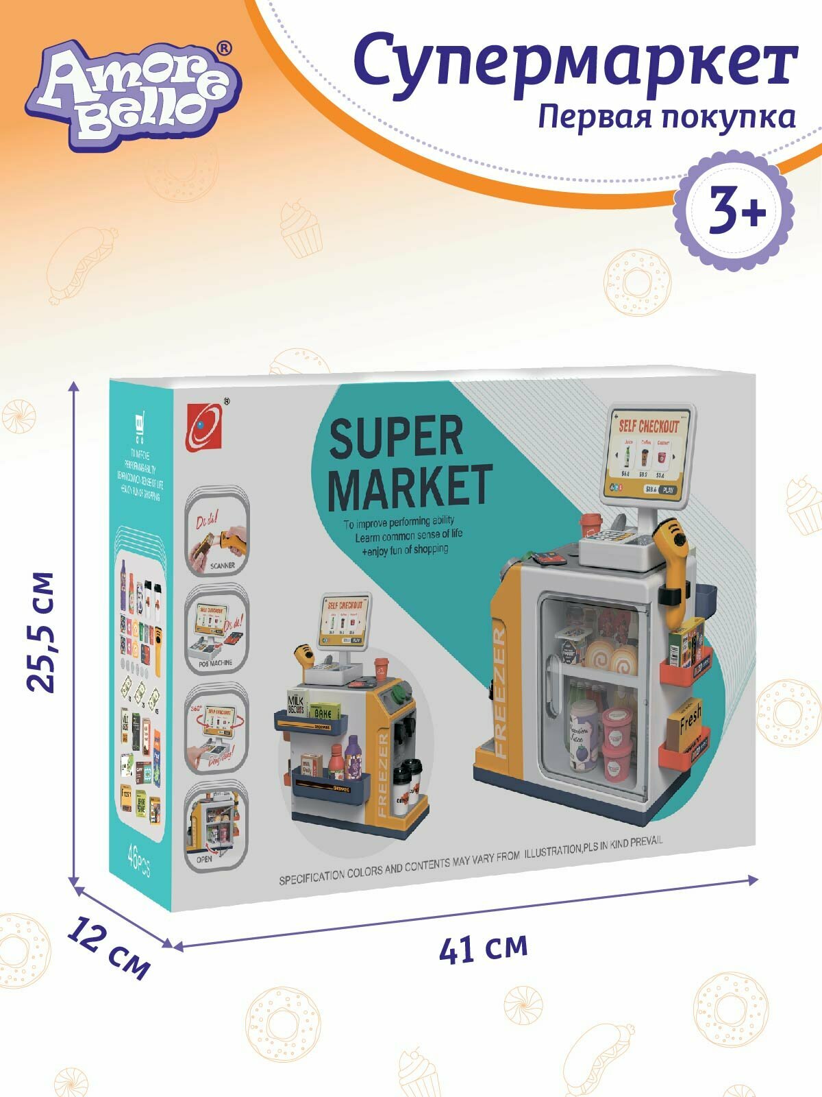 Игровой набор Супермаркет "Первая покупка" от ТМ Amore Bello, сканер/терминал/деньги, 46 предметов, свет/звук, JB0211657