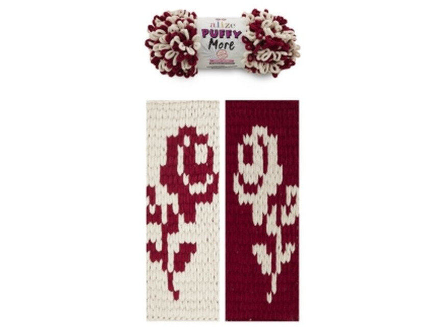 Купить Пряжа Alize Puffy More экрю-вишневый (6271), 100%микрополиэстер, 11.5м, 150г, 1шт