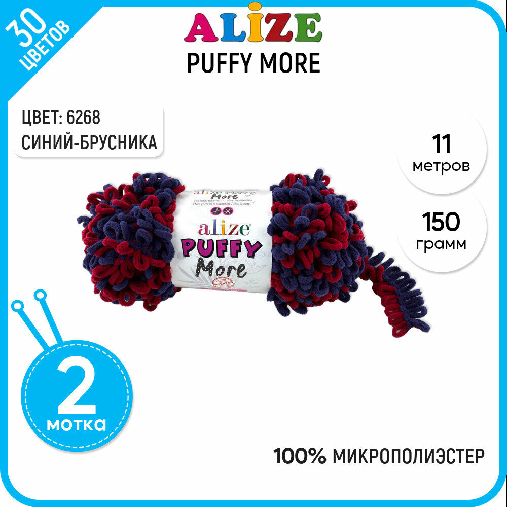 Купить Пряжа Alize Puffy More вишня-ультрамарин (6268), 100%микрополиэстер, 11.5м, 150г, 2шт