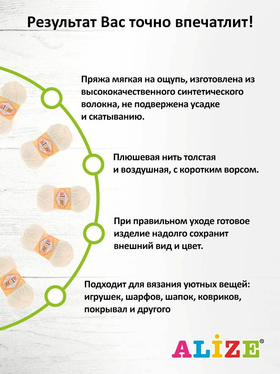 Пряжа для вязания плюшевая Alize Softy, цвет 62 молочный, 50г, 115м, 5 шт/упак