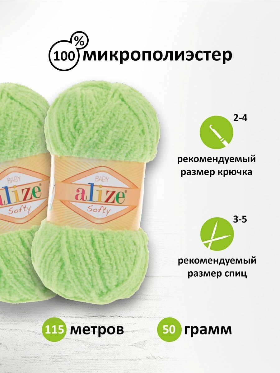 Пряжа ALIZE SOFTY, зеленый - 485, 100% микрополиэстер, 5 мотков, 50 г, 115 м.
