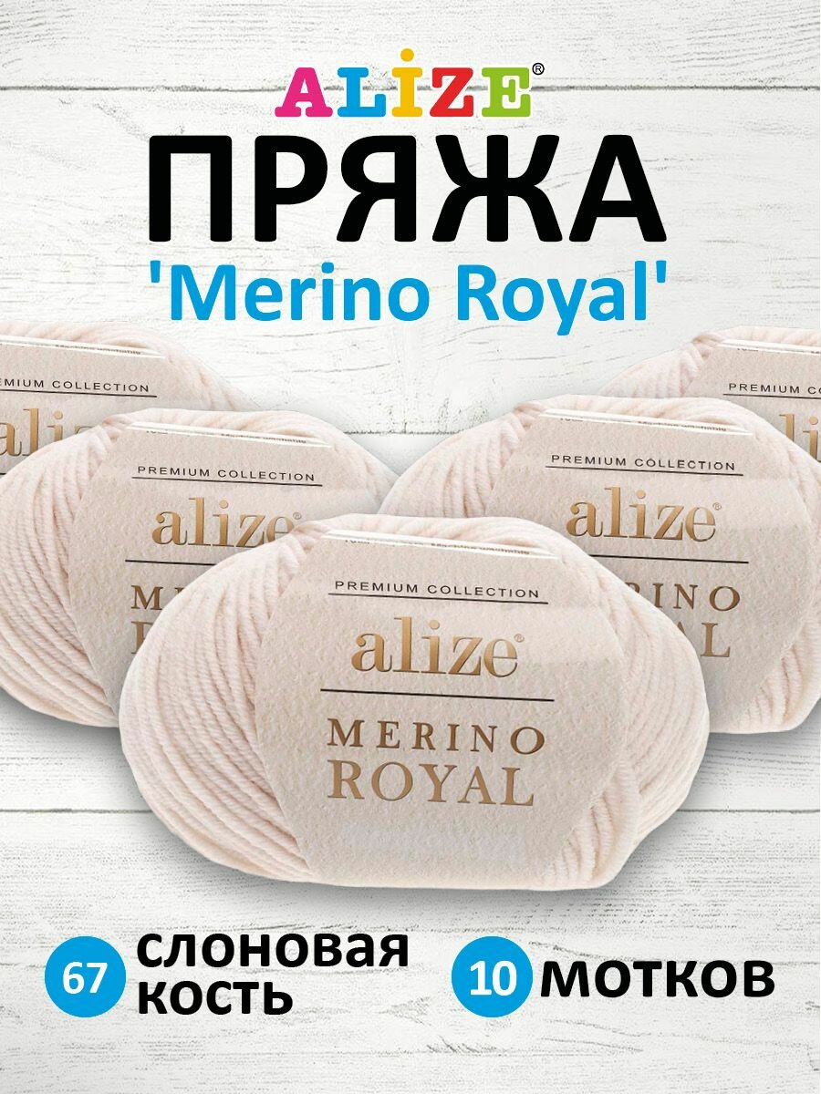 Пряжа MERINO ROYAL (Alize), слоновая кость - 67, 100% шерсть, 10 мотков, 50 г, 100 м.