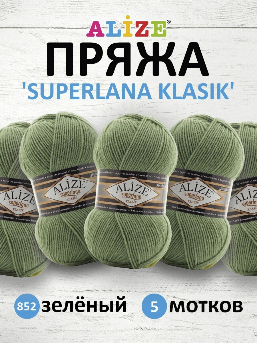 Купить Пряжа для вязания ALIZE 'Superlana klasik' (однотонная), 100г, 280м (75% акрил, 25% шерсть), ТУ (852 зелёный), 5 мотков