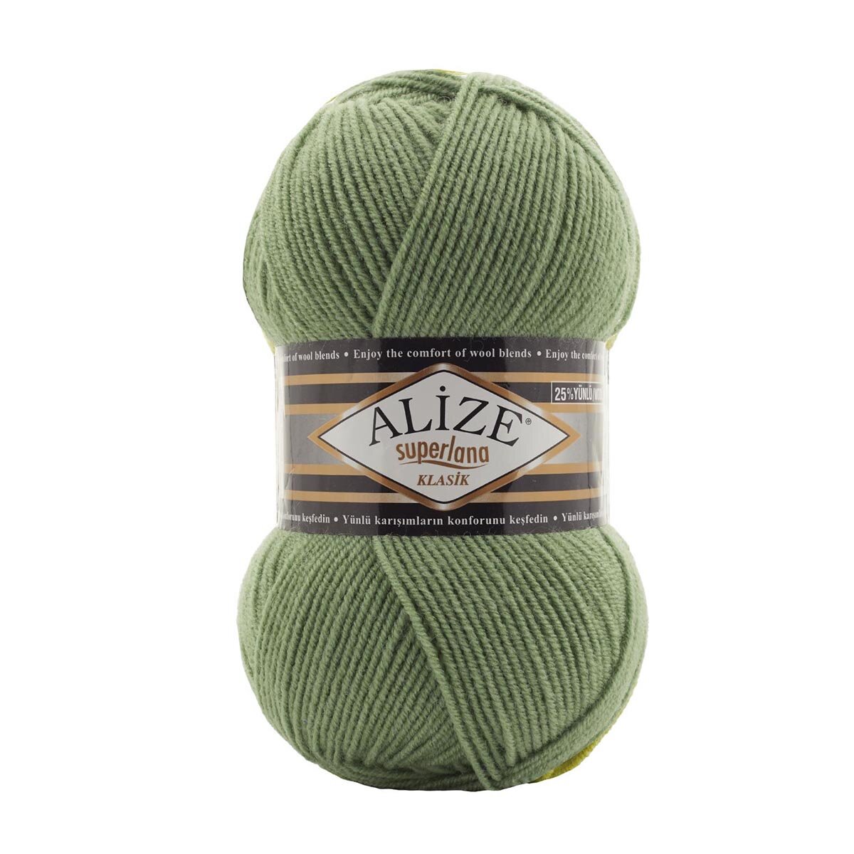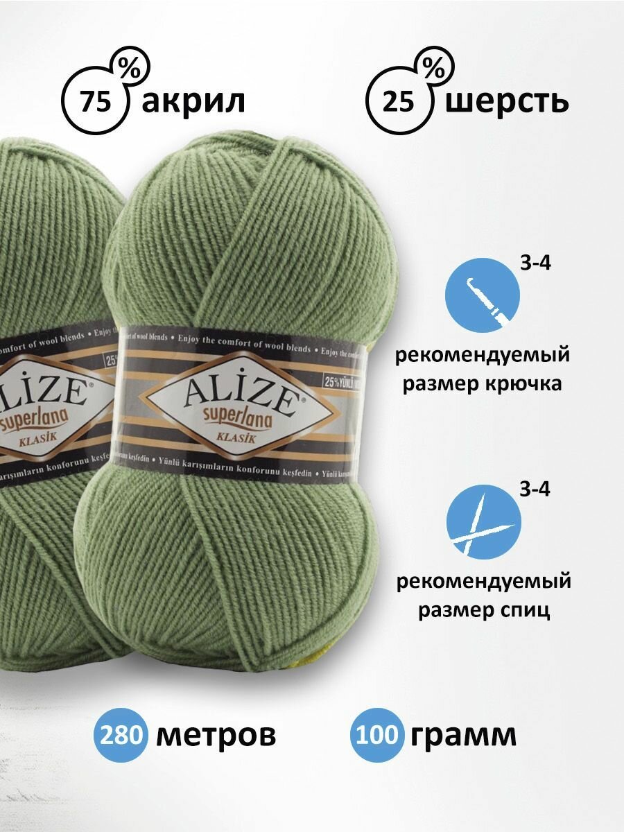 Пряжа Alize Superlana klasik (Суперлана Классик) - 2 мотка 138 зеленый миндаль 25% шерсть, 75% акрил 280м/100г