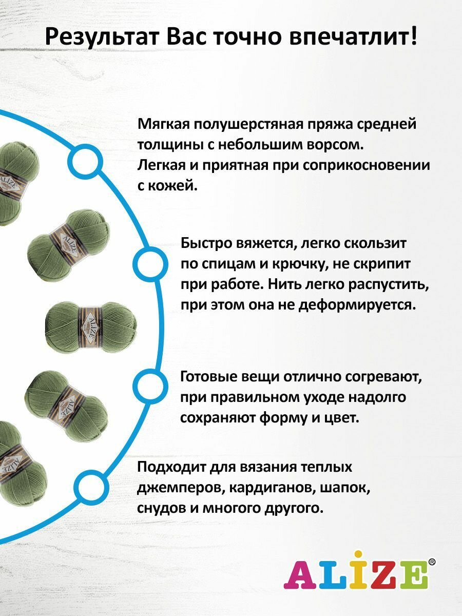 Пряжа для вязания ALIZE LANAGOLD 800 (Лана голд 800) - 5 мотков, 29 хаки, состав: 49% шерсть, 51% акрил. Вес мотка: 100 гр, длина нити: 730 м.