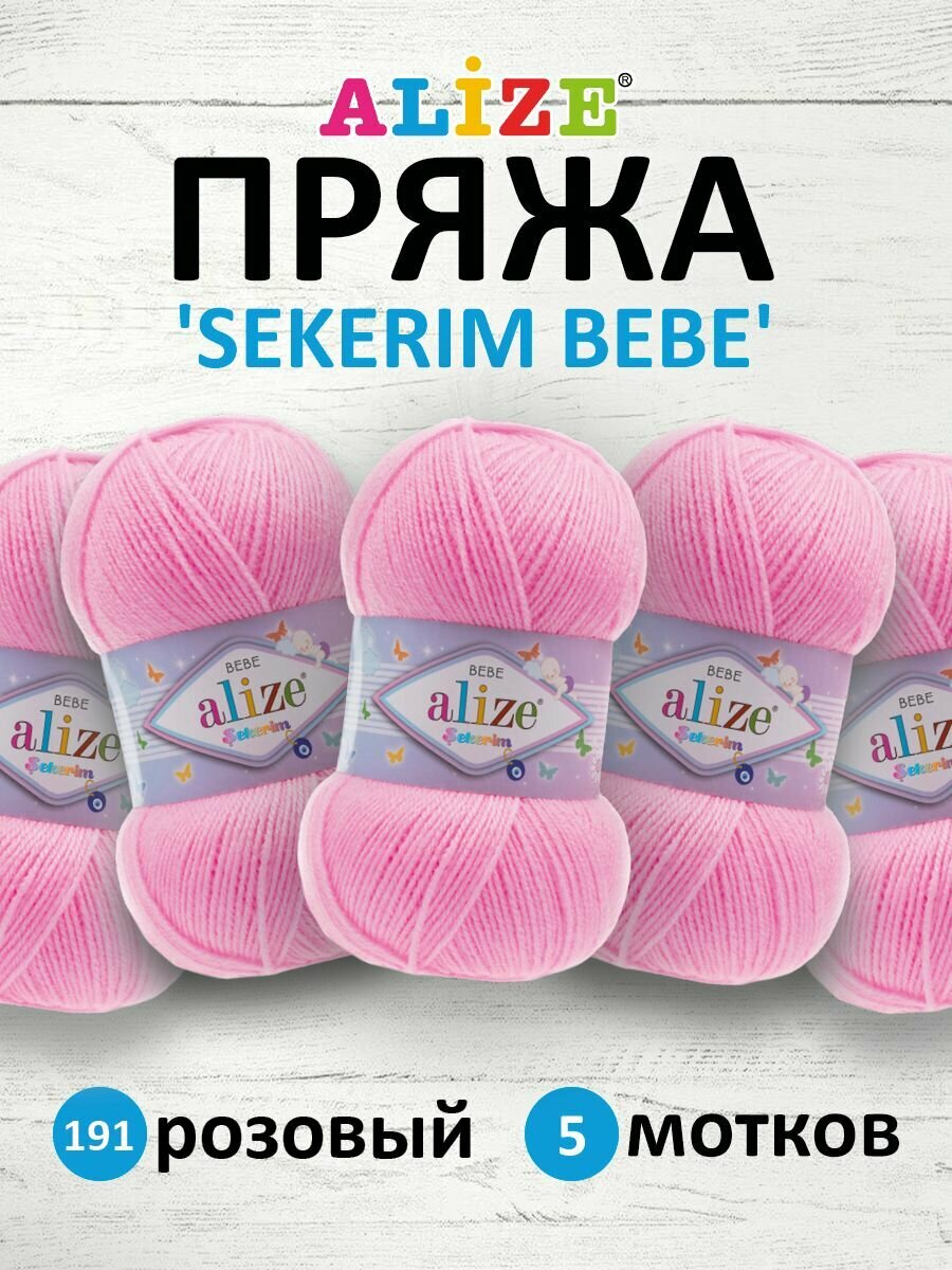 Пряжа ALIZE SEKERIM BEBE, розовый - 191, 100% акрил, 5 мотков, 100 г, 320 м.