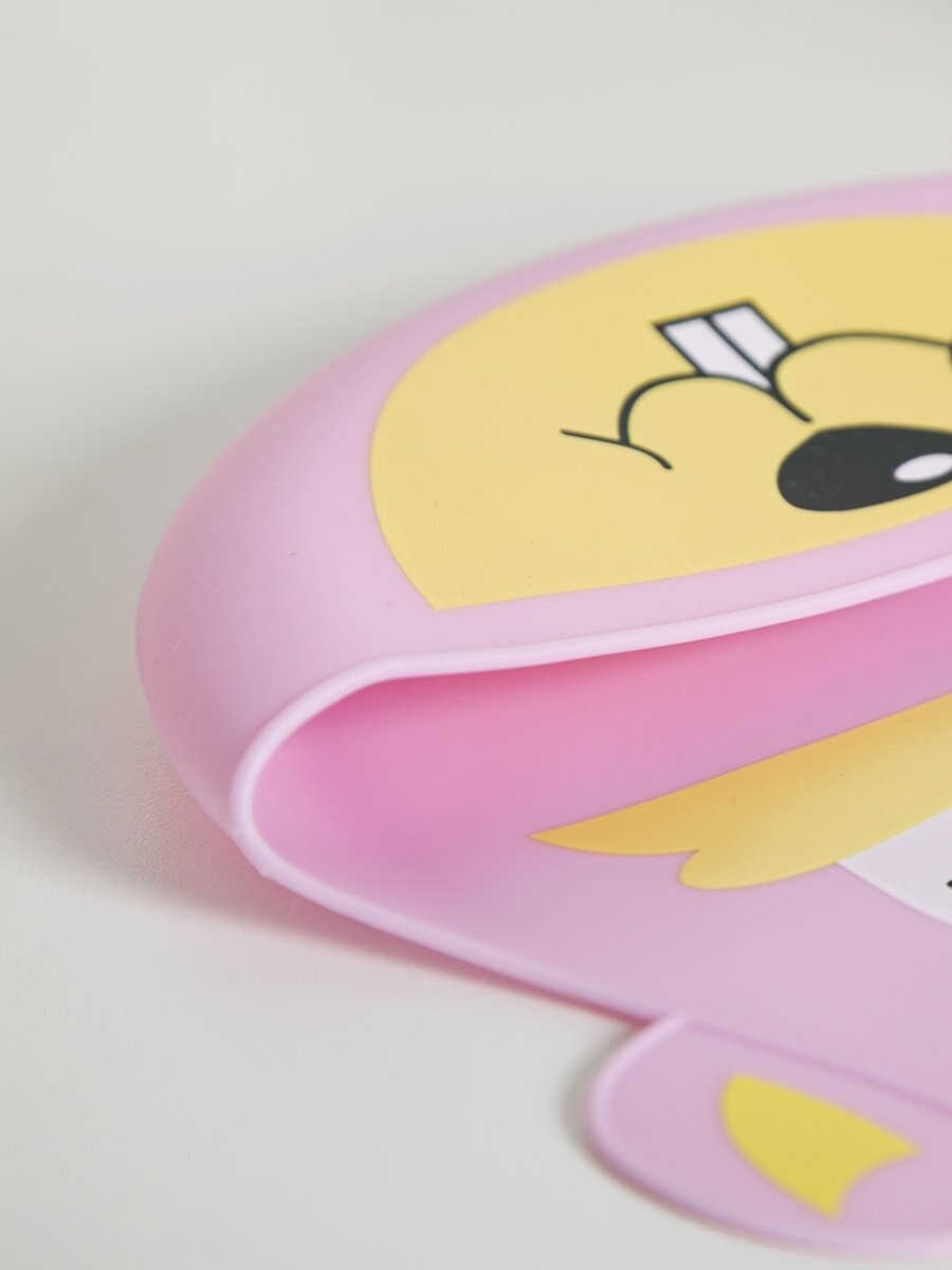 Нагрудник для кормления детский силиконовый с кармашком, Baby Nice, 21х28, "Зайка", розовый