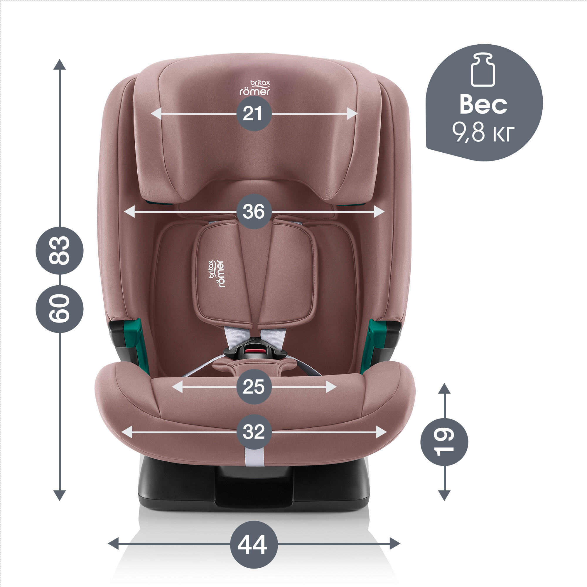 Автокресло детское Britax Roemer EVOLVAFIX Dusty Rose с 15 месяцев до 12 лет, рост 76 - 150 см, розовый