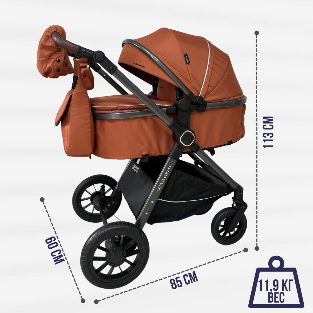 Детская коляска трансформер с перекидной ручкой Little Sonya A4 3в1 Коричневый