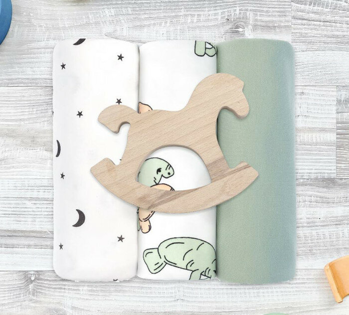 Сет из 3х пелёнок Mjolk Dinoworld/Звёзды/Baby Blue (80см*80см)