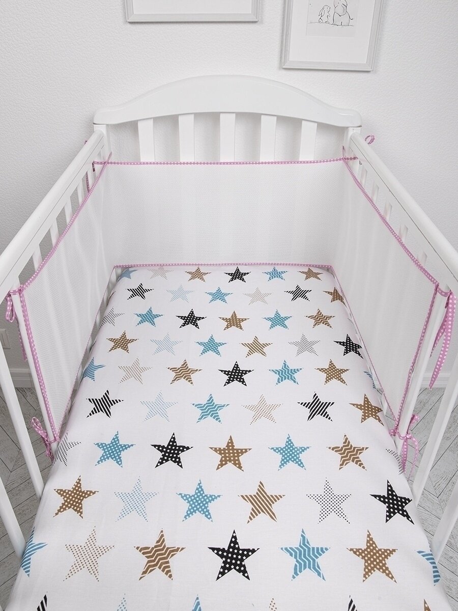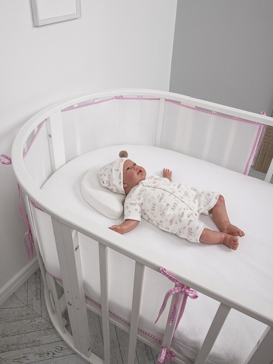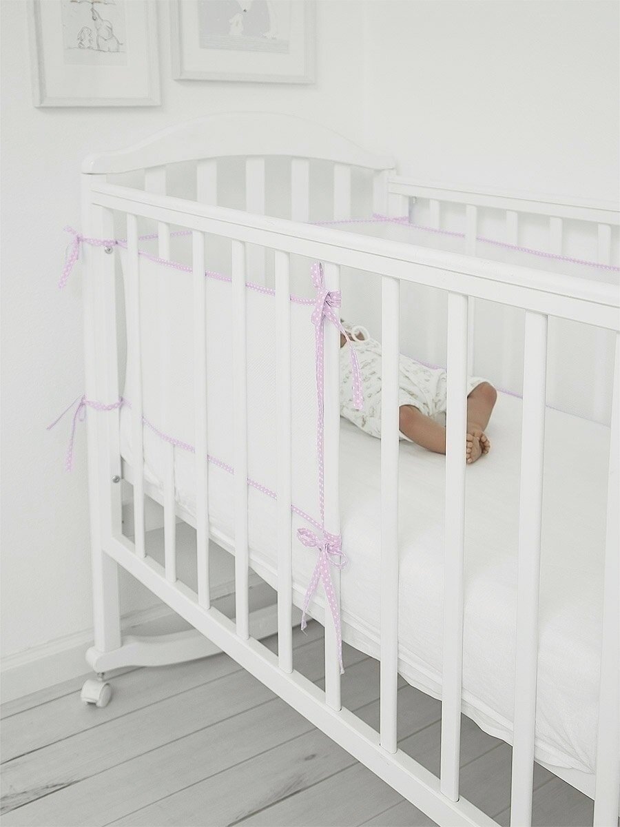 Бортики в кроватку для новорожденных 31х180 сетка, дышащие. Универсальные. На круглую, овальную кроватку. розовый Baby Nice