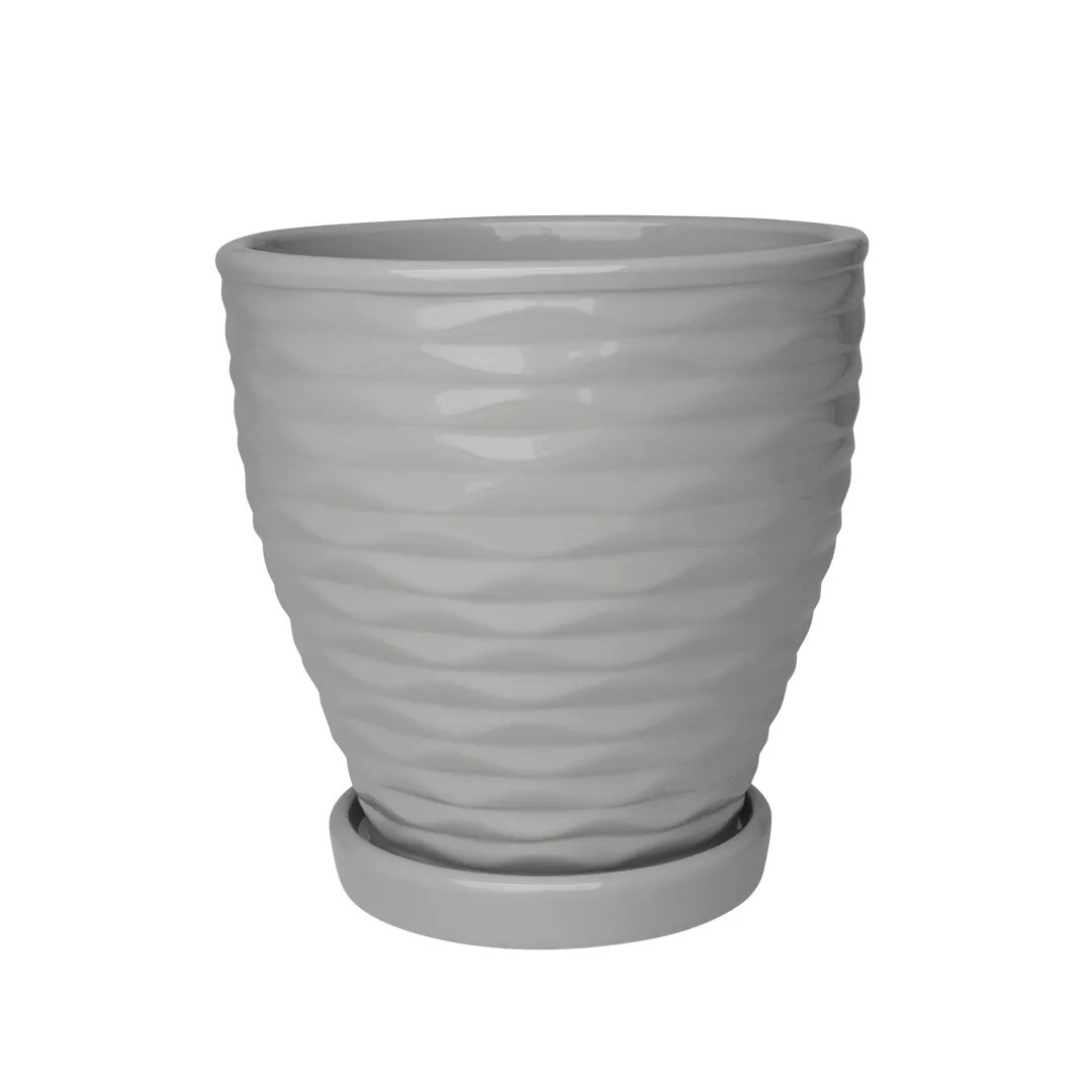 Горшок для цветов с литым поддоном / Керамический цветочный горшок 2,5 литра серый