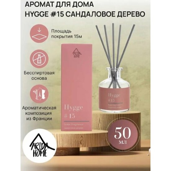 Ароматический диффузор Arida Home Хюгге #15 Сандаловое дерево, 50 мл
