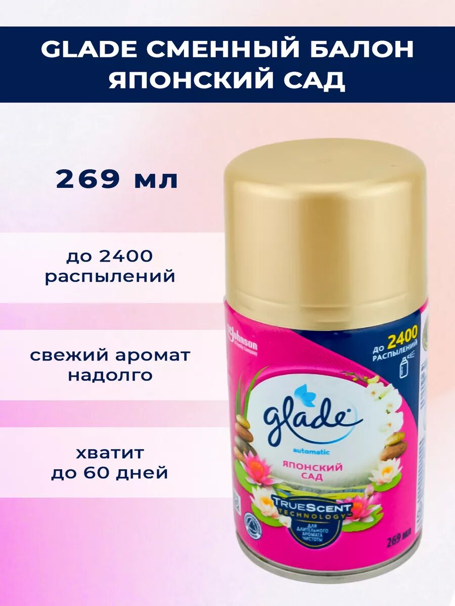 Glade Automatic Универсальный сменный аэрозольный баллон для автоматическго освежителя воздуха Японский сад 269 мл интересное: