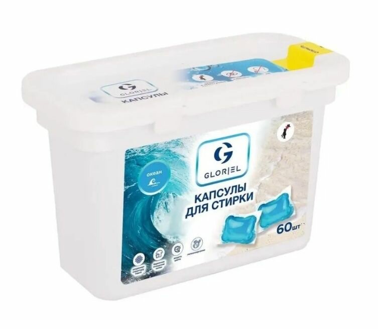 GLORIEL Мини-капсулы для стирки белья Океан, 8 г, 60 шт интересное: