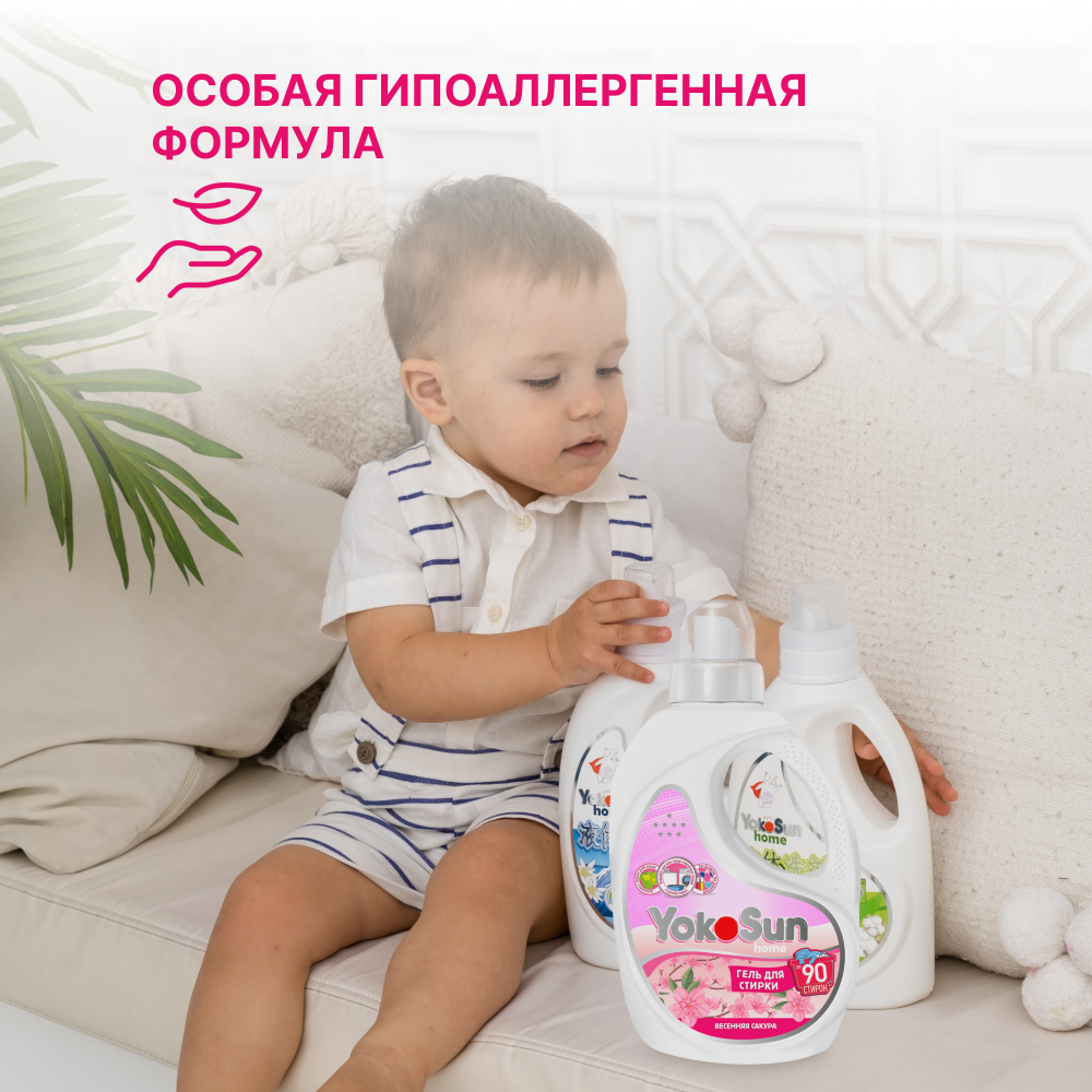 Гель для стирки белья YokoSun "Весенняя сакура" 2,1л, универсальный концентрированный, гипоаллергенный жидкий порошок интересное:
