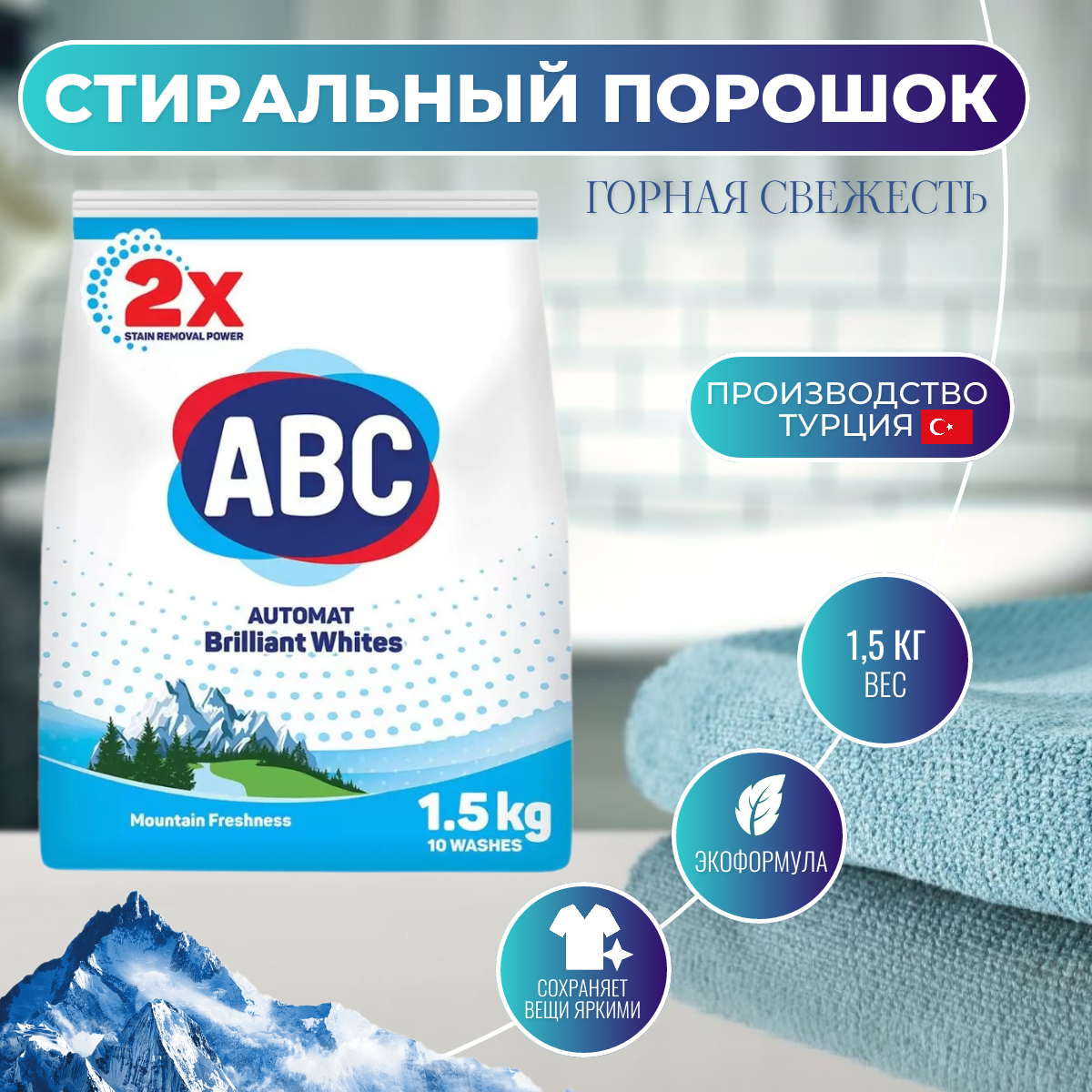 Стиральный порошок ABC "Свежесть гор", для любых тканей, 1,5 кг