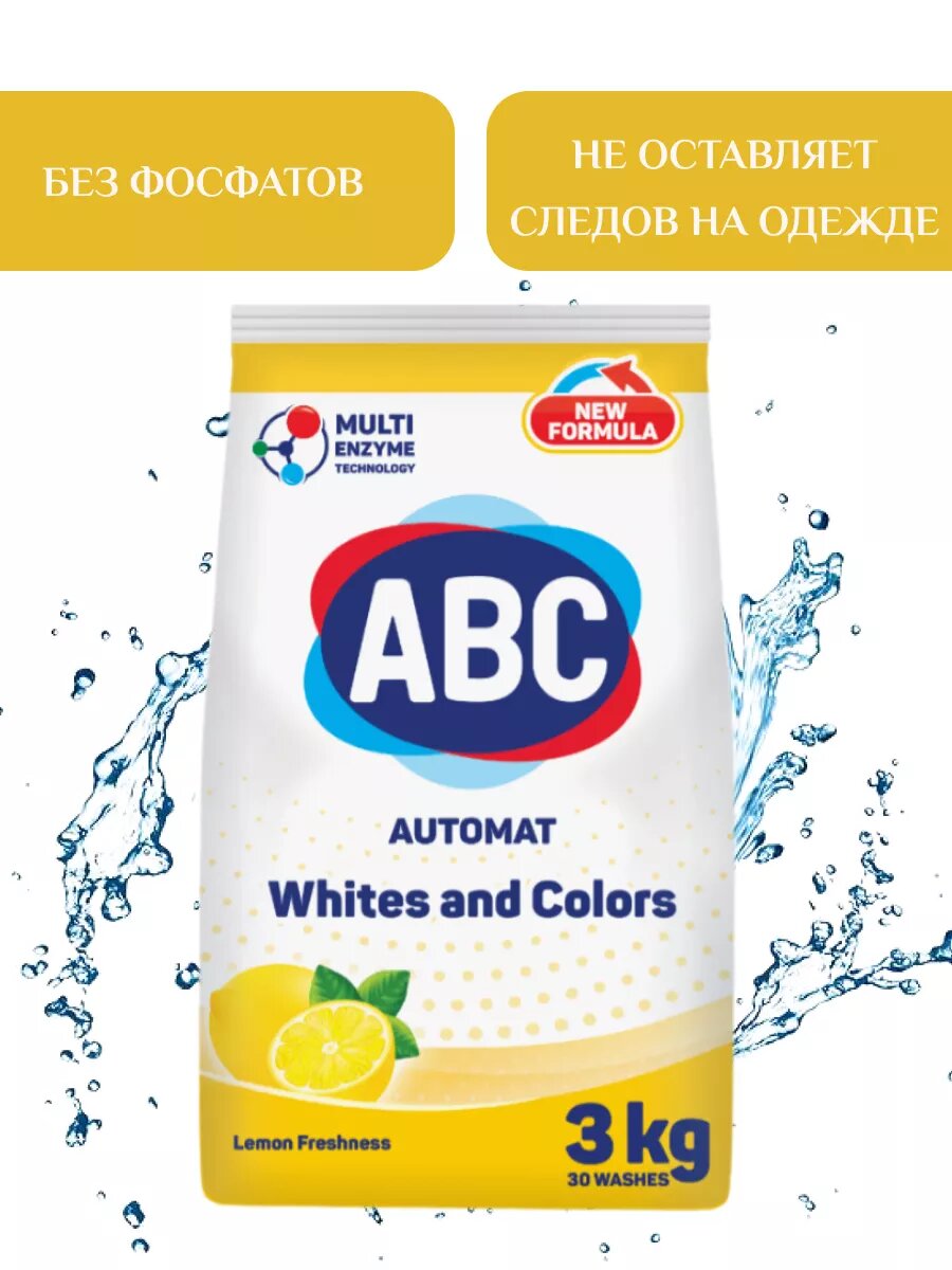 Стиральный порошок АВС Универсальный, 3 кг. / Аромат Лимона/ АБЦ Турция