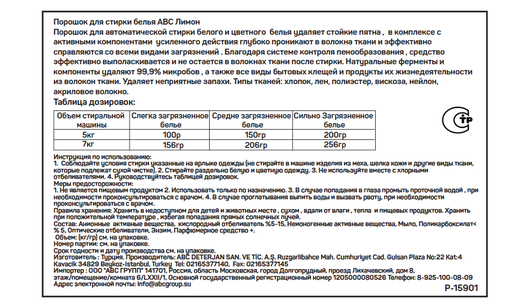 | Способ применения | Стиральный порошок АВС предназначен для стирки белого белья , удаляет стойкие загрязнения, аромат свежести , защита волокон |